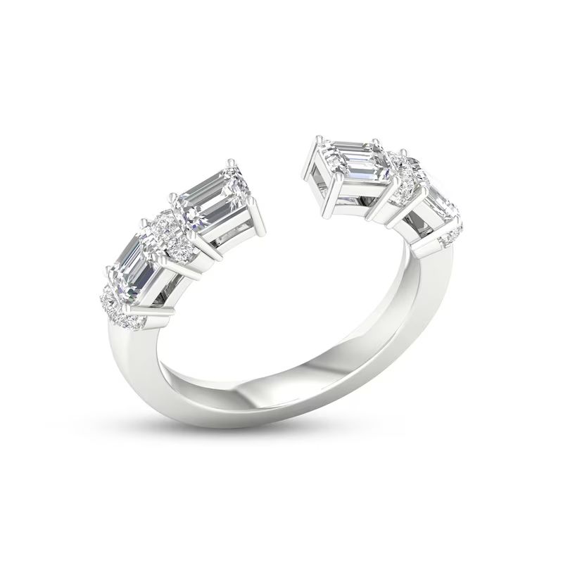 Perfect for stacking or for a chic look when worn alone, this beautiful ring showcases an open deconstructed band design set in iconic 14K white gold. Stunning emerald-cut diamonds alternate with duos of brilliant round diamonds for a total diamond weight of 1 carat.